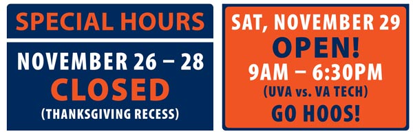 M-F: 8:30AM-6PM | SAT: 9AM-5PM | SUN: 11AM-5PM