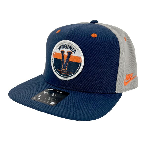 This University of Virginia snapback cap from the Vintage Collection features a circular patch with the classic Vintage V logo on the front. With its adjustable fit and timeless design, it’s a bold way to celebrate UVA’s storied past.