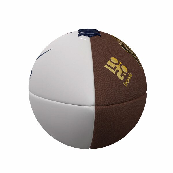This officially licensed, high-quality autograph football is great for gifts, collectors, and home or office display. A brown pebble grain panel features a team wordmark in black. Two smooth white panels give ample room for signatures. The top smooth panel has a large heat-transferred team logo. Best if signed with a permanent marker and given time to dry to prevent smearing.