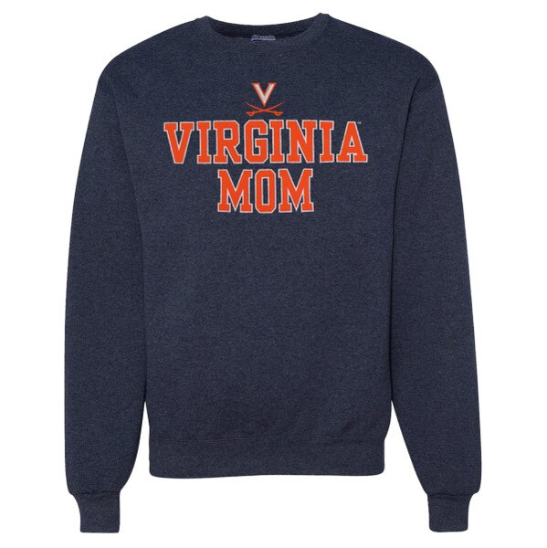 Display your pride and let the world know your child attends UVA in this heather navy sweatshirt with ribbed collar, cuffs and bottom that features an imprinted “Virginia Mom” graphic in orange/white on the front.