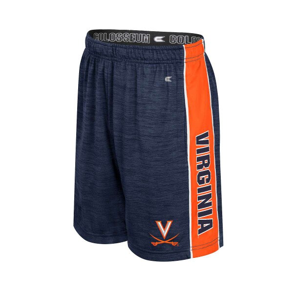 Youth shorts with contrasting inner drawcords and rubberized Virginia and sabre logo printing.