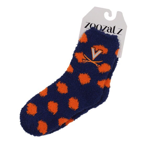 Stay cozy and show your Virginia pride with these University of Virginia knit fuzzy socks, featuring a playful polka dot pattern and an embroidered sabre logo. Perfect for lounging at home or cheering on the Cavaliers in comfort and style.