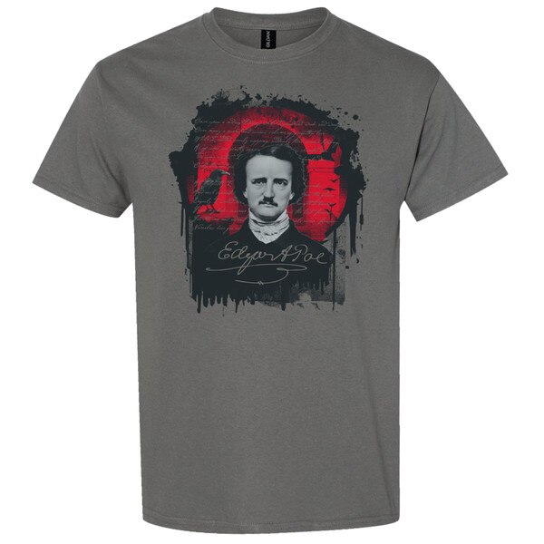 Celebrate the master of the macabre with our gray Edgar Allan Poe T-shirt. The front features a striking graphic of Poe and the iconic raven, with the text of his haunting poem elegantly incorporated into the design. Made from soft, breathable cotton, this shirt offers comfort without sacrificing style, making it perfect for literature lovers and gothic enthusiasts alike. Wear a piece of literary history and let Poe’s timeless words make a bold statement.