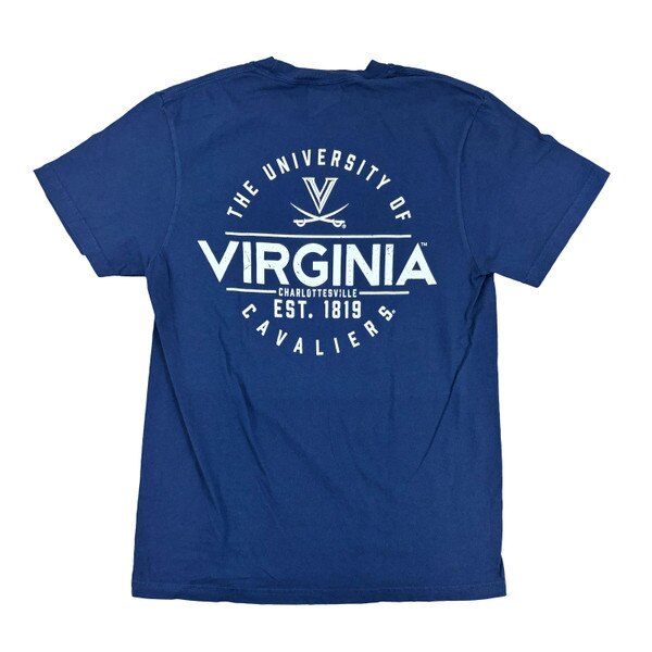 This University of Virginia cotton tee features a circular logo on the front left chest panel for a clean, classic touch. The full-size matching graphic on the back makes a bold statement of Cavalier pride.