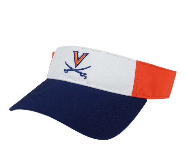 Show your school spirit with this stylish tri-color University of Virginia visor, featuring an eye-catching sabre logo embroidered on the front. Perfect for sunny days on campus or at the game, it combines comfort and flair for any UVA fan.