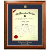 Law Frame Gold Edge Mahogany, Navy/Orange Suede Double Mat with 24K Gold Medallion